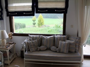 Имеет вид на горы, на лес, также есть мебель, камин, бассейн, парковочное место, газон.