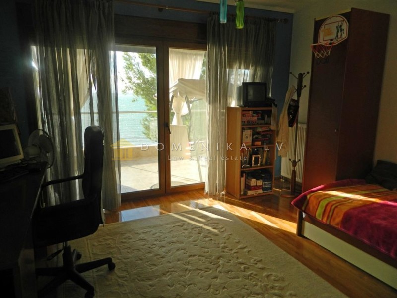 Продается трехуровневый таунхаус в пригороде г. Салоники. Дом имеет красивый вид на море, пляж расположен в 30 метрах и попасть на него можно, спустившись по лестнице с территории, прилегающей к дому. Первый этаж дома состоит из гостиной с кухней и камином санузла. Второй этаж вмещает спальную с камином и ванную комнату с гидромассажем. На третьем этаже находятся 2 спальни и ванная комната.