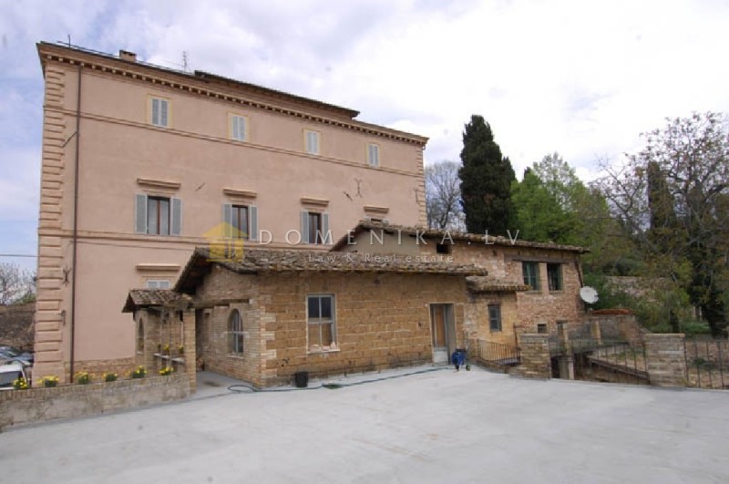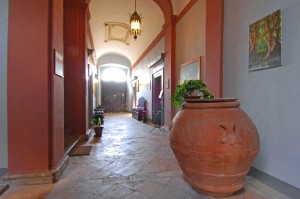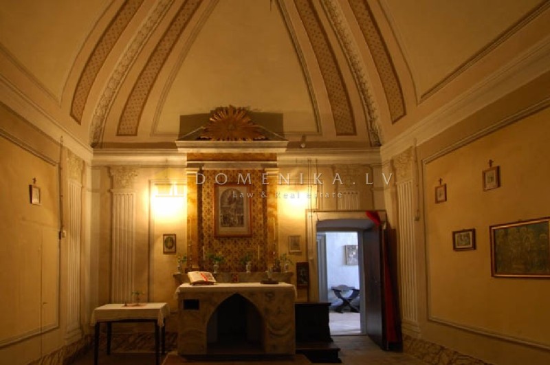 The entrance is on the ground floor and leads to a wide corridor wide arched ceilings and original terracotta flooring. On the left handside there is a room of 20 square metres, a private chapel and a cellar, while on the right hand side there are the kitchen and another room, once used as laboratory .