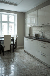 Flooring in the entrance hall, living room and bedrooms is natural parquet. Heated floors in kitchen area and in bathrooms are tiled with «Kerama Marazzi» tile.