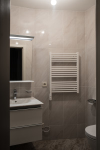 The guest bathroom has «Huppe» shower, «Duravit» ceramics with «Hansgrohe» mixers.