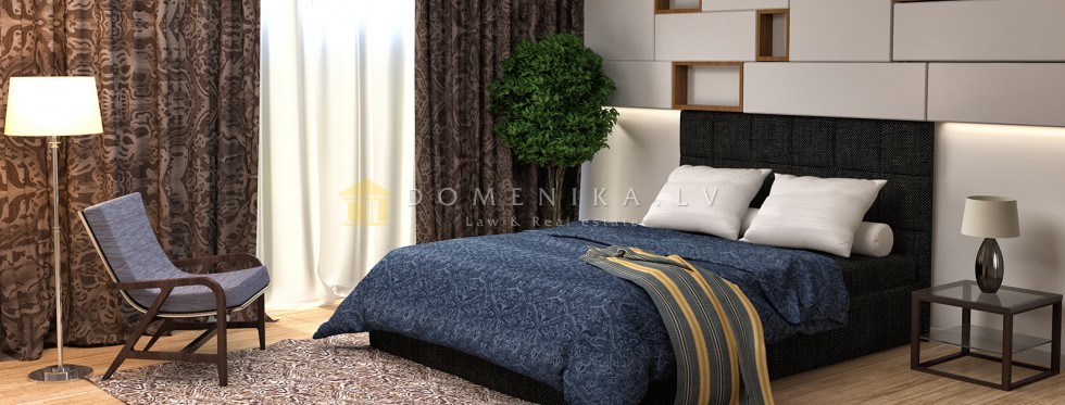 Proposal for reservations. The apartment is in the near Pardaugava, near the city center, in a new project. Excellent layout, spacious living room connected with dining area and access to the terrace - 24.5 m2. Two bedrooms, two bathrooms, corridor.