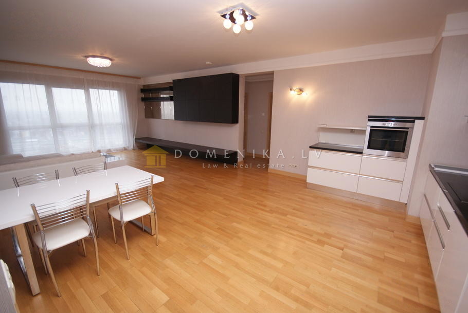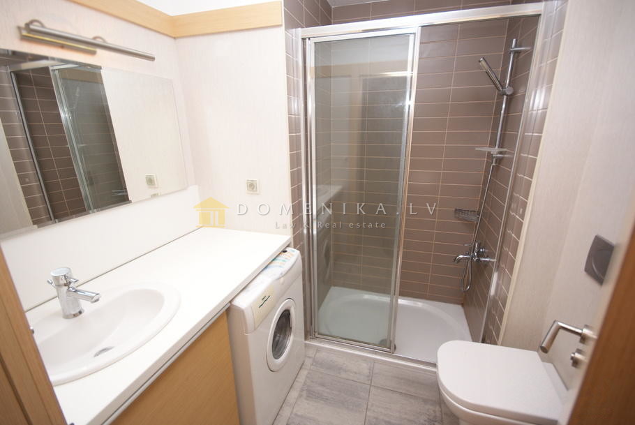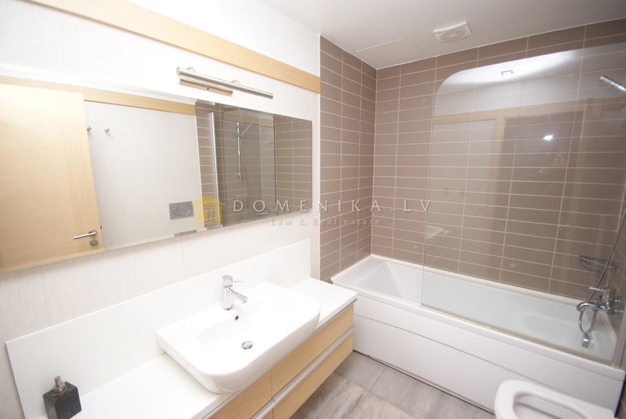 Two bedoom apartment with breathtaking view in the prestigious residential and business complex “Panorama Plaza” is offered for long term rent. The building has a fire alarm and smoke exhaust system; the apartment has individual smoke detectors installed. Residential area is guarded, entrance doors can be opened only with a security code, and each apartment has a built-in video intercom. Security cameras are installed, and the building has on site guard 24 hours a day. “Panorama Plaza” has green surroundings and two children’s playgrounds. The house is located 5 min drive from Riga center, 7 min drive from Riga International Airport and 15 minutes drive from Jurmala. The business and shopping centre located in the “Panorama Plaza” complex is a pleasant place for residents to do their shopping. For your convenience, one of the biggest shopping centers in Riga, “Spice”, as well as sports and recreation centre “Bowlero” are located next to the “Panorama Plaza”.