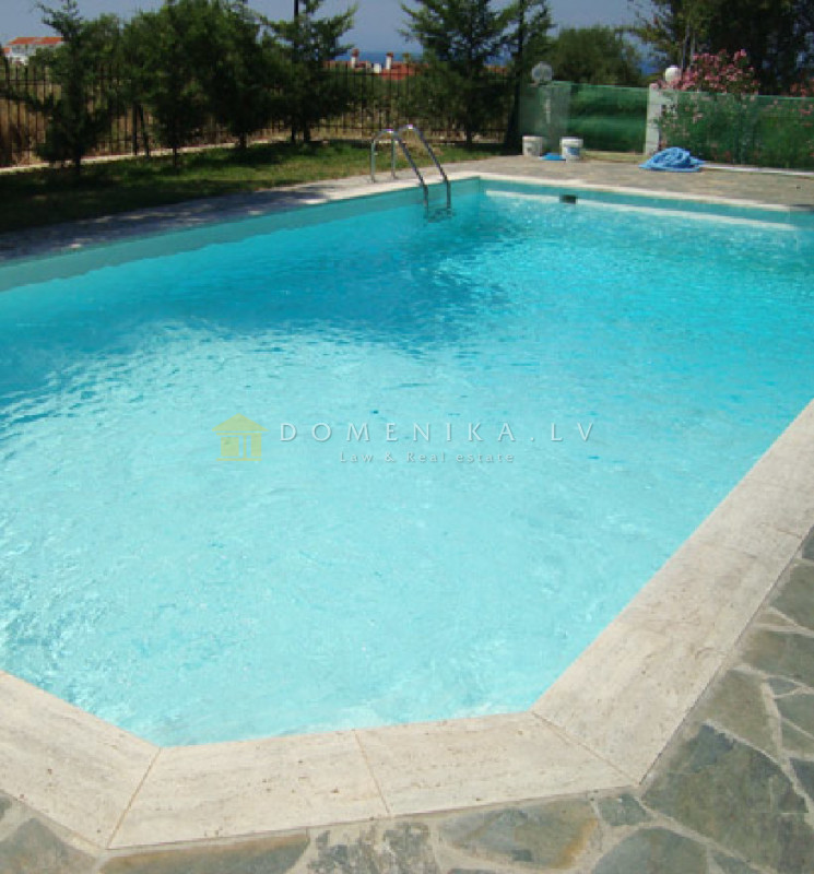 Имеет великолепный вид на море, также есть мебель, камин, бассейн, парковочное место, отопление.