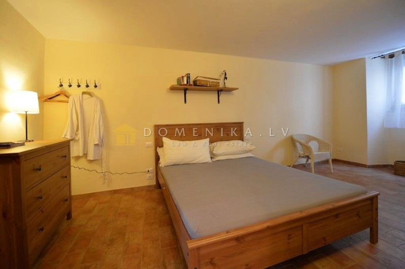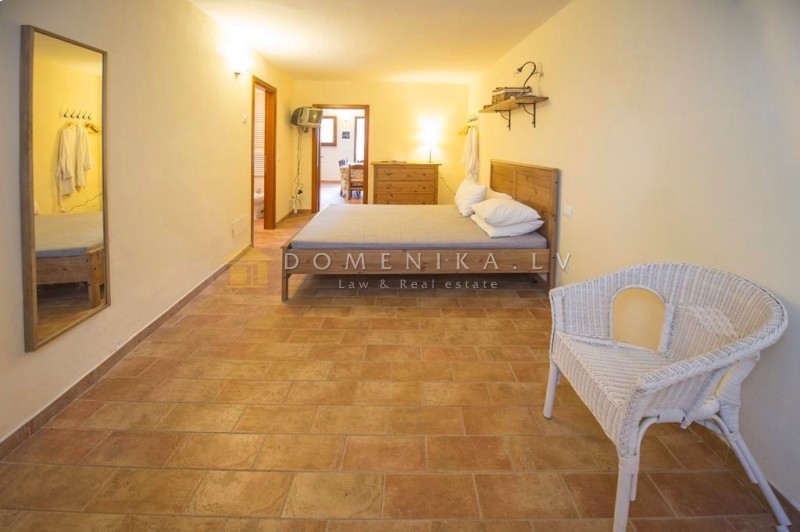 Дом был восстановлен с большой осторожностью и оборудован по последнему слову техники. Пол на втором этаже - паркет из оливкового дерева. Потолки с поперечным деревянным ригелем в чередовании с терракотовой плиткой.